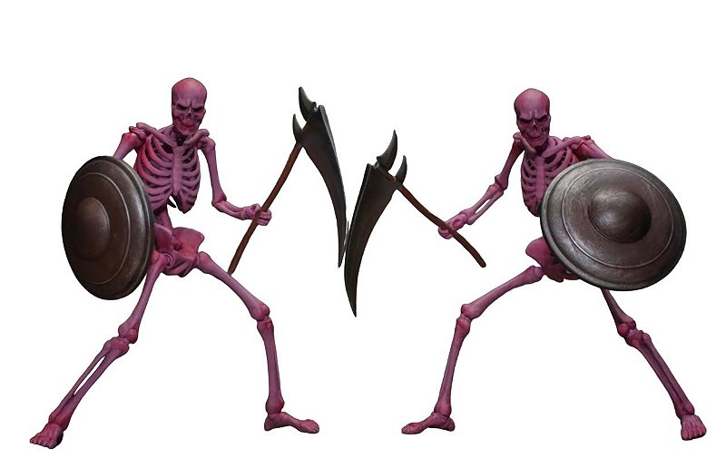 Cada figura possui aproximadamente 16 cm de altura, ideal para exibição e coleção. Seu tamanho permite capturar todos os detalhes dos esqueletos, desde seus ossos até os detalhes de suas armas e acessórios.