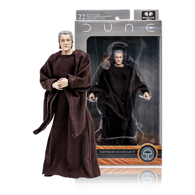 Explore o universo de Duna com esta impressionante action figure do Imperador Shaddam Corrino IV. Inspirada na figura poderosa do líder supremo de Arrakis, esta figura detalhada captura a essência e a autoridade do personagem.