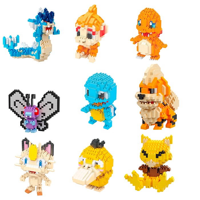 - 1 Pack com 9 Pokémon Ver. 1 - Mini Blocos de Montar