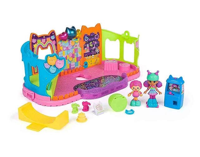 Com a Gabby patinadora e o Marty patinador, ambos com patins funcionais, o playset proporciona momentos de diversão criativa, além de ser compatível com a casa de bonecas Gabby’s Dollhouse (vendida separadamente), ampliando ainda mais as possibilidades de brincadeira.